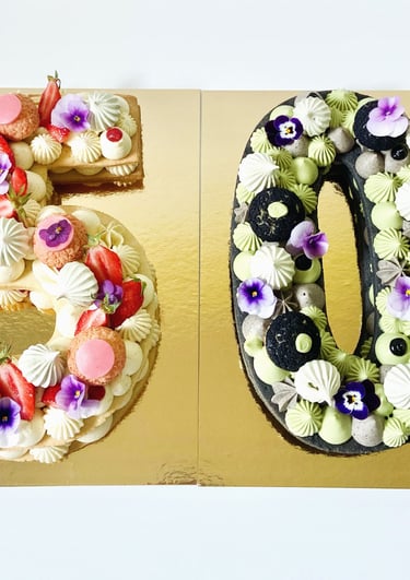Les gâteaux en forme de lettres ou de chiffres pour vos anniversaires ou événements particuliers. Je les travaille comme mes tartes & pavlovas : avec une grande exigence gustative et des ingrédients de qualité.